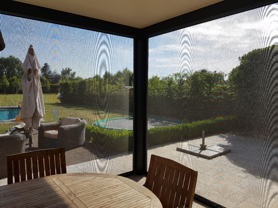Sergé 5%: het standaard doek met 5% openingsfactor biedt een goede balans tussen zonwering, verblinding, privacy en transparantie.